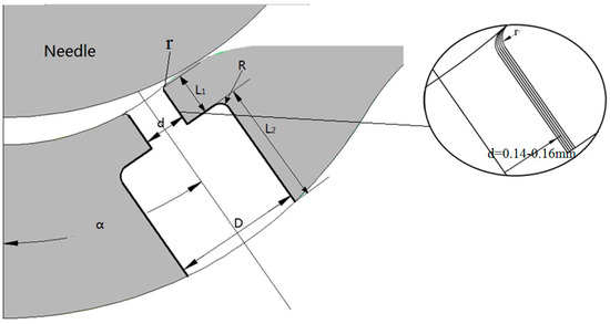 Figure 2 shows the structural parameters of the GDI injector nozzle. It includes an inner nozzle and an outer nozzle. The structure parameters of the inner nozzle contain the diameter d, length L1, and inlet round r. The structure parameters of the outer nozzle contain the diameter D, length L2 round R. The nozzle angle is α. The detail value, boundary conditions, and mathematical models can be found in Table 1.