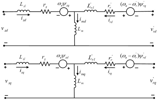 Equivalent circuit of the DFIG in the dq-synchronous reference frame.