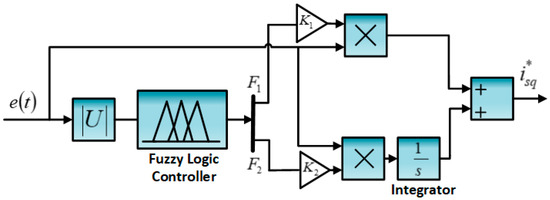 The PI controller comprising constant integral and proportional gain and , respectively. Control scheme performance is enhanced by adaption of gain with respect to error. This distinguish feature of adaption can be achieved by applying fuzzy rules as illustrated in Table 1: