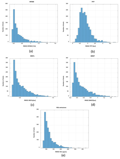 Artificial intelligence systems include different methodologies, such as, support vector machine (SVM), fuzzy logics, and artificial neural networks (ANNs). These methods belong to the black-box category, and are often used for model-based control purposes since they require a low computational effort. They are capable of capturing the non-linear behaviors of complex systems, without the need of modeling the physics of the process to be simulated. The main drawback of these types of models is that they require, in general, a high number of experimental tests for robust training, and tend to lose accuracy when extrapolating outside the calibration range. Moreover, they can be subject to overfitting. Some examples are reported in refs. [21,22,23,24,25]. In particular, in ref. [21] an ANN-based model was developed and applied to predict the variation of energy efficiency, exergy efficiency and exhaust temperature based on biodiesel type and engine load. In ref. [22] an ANN-based model was implemented and used to predict combustion product composition and gas thermodynamic properties. In ref. [23], a recurrent non-linear autoregressive with exogenous input (NARX) neural network is proposed, for reconstructing cylinder pressure in multi-cylinder IC engines using measured crank kinematics. The study proposed in ref. [24] illustrates NOx and smoke emission models based on an artificial neural network approach with Multi-Layer Perceptron (MLP) architectures. The results show that both models are capable of capturing the highly nonlinear engine-out emissions high accuracy and strong generalization performance over NEDC and WLTP missions. Finally, in ref. [25] the authors propose hierarchical models, namely “neuro-fuzzy model trees”, to predict transient particulate mass and NOx.