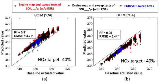 The term is a scaling factor which accounts for the fact that the range of NOx deviations changes as a function of the engine operating points, even for constant deviations of MFB50 and intake O2 concentration. The pIMF/qf,inj term takes into account the effect of the air-to-fuel ratio (AF). AF was not used directly since it is affected by a higher degree of uncertainty than that of the pIMF/qf,inj term.
