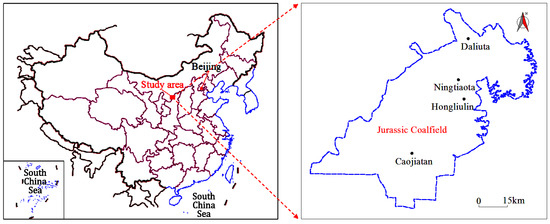 The Jurassic Coalfield in northern Shaanxi, China, is one of the world’s seven largest coalfields (location is depicted in Figure 1). It has shallow coal seam reserves and mining conditions are attractive. It is characterized by small inter-burden strata thickness between two coal seams (no more than 40 m), and three to five coal seams mainly mined; overall, it is categorized as SBCSM-S mining [1]. Engineering practice has revealed two major problems: the concentrated stress caused by coal pillars, resulting in difficult lower roadway support, and serious ground surface fractures caused by repetitive mining; the surface has an uneven subsidence [2]. Consequently realizing scientized mining, characterized by safe, efficient and environmental protection, is a significant problem that needs solving [3,4,5].