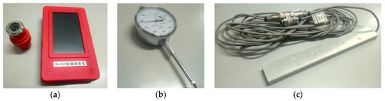 Figure 5. Experimental monitoring system: (a) Fracture width gauge; (b) Dial indicator; (c) Force test sensor.