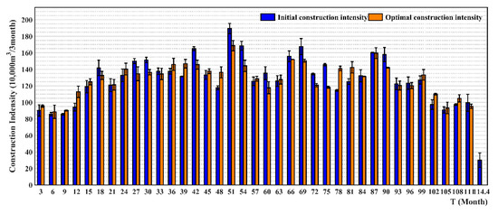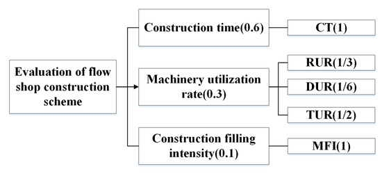 - Determine the preferable flow shop construction scheme: Determine the preferable flow shop construction scheme through the method proposed in Section 3.2. Then, construction filling intensity can be obtained using the improved CSHRD model.