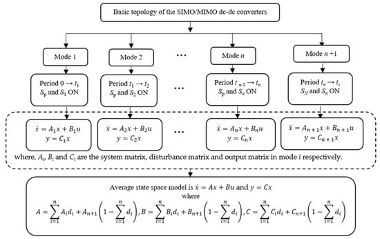 The averaging of the converter dynamics over an entire switching cycle is required as the converter switches among (n + 1) modes during each switching cycle. The procedure used to obtain the average state space model of SIMO and MIMO DC-DC converters is represented as a block diagram in Figure 3.