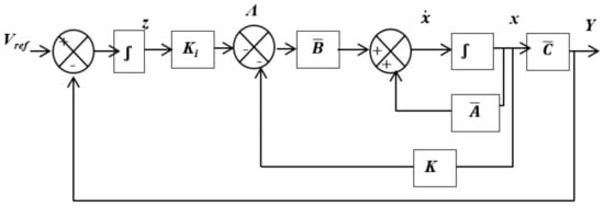 where k is the feedback gain matrix of order d × p and ki is the integral matrix of order n × d. The state space model of the closed loop system is given as:
