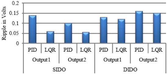 Figure 14 and Figure 15 show the bar graph which indicates the settling time and ripple of both the converters respectively when both multivariable PID and LQR controllers are used at the operating point.