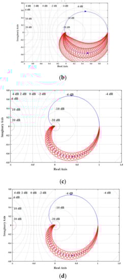 Gershgorin bands of converters with controller for SIDO (a) g11(s) (b) g12(s) and DIDO (c) g11(s) (d) g12(s).