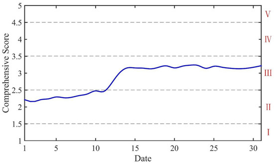 First, to illustrate the effectiveness and superiority of the D-MEE method, it is compared with the set pair analysis method, fuzzy comprehensive evaluation method, and matter-element extension method. The data come from the monitoring data from 5 to 15 October. The comparison of results is shown in Table 2.