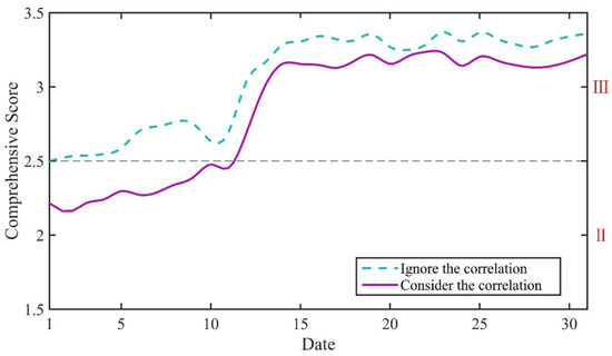 Second, to illustrate the necessity of considering the correlation among indicators when determining the weights, the method proposed in this paper is compared with the case that ignores the correlation among indicators and determines the weights using the entropy method.