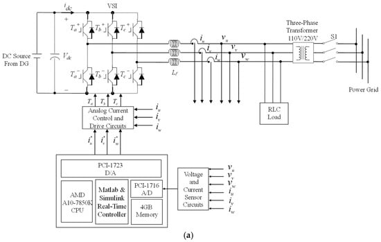 DG system for tracking control and islanding detection: (a) Block diagram of the PC-based control computer; (b) Photos of the PC-based laboratory setup.