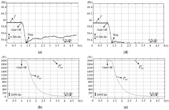 Nowadays, due to the growing awareness about environmental concerns and the limited supply of fossil fuels, renewable energy sources (RES) such as wind turbine, biomass, photovoltaic, fuel cell, etc., have been gaining wide attention in power system [,]. Moreover, in the past decades, the manufacturing technology of distributed generators (DGs) based on RES has also matured. Thus, DG systems have become part of daily life. Owing to the increasing penetration of DG systems, the power system has become more complex and this raises several concerns. The most important issue of the DG systems connected to the power grid is the islanding phenomenon [,]. Islanding occurs when DG systems and loads are disconnected from the power grid but continue to dispatch the generated power energy to the loads [,]. In other words, when the load power and the generated power of the DG systems are balanced, i.e., the load power is fully supplied by DG systems, the islanding phenomenon occurs. Meanwhile, if the power grid breaks down, the frequency and voltage disturbances of DG systems can’t be detected according to the IEEE 1547 or UL 1741 standard [,]. The islanding phenomenon will endanger the power system and result in poor power quality and personnel safety hazards []. Hence, in practice, the islanding phenomenon is an intolerable situation and isn’t allowable in the power system. Moreover, according to the IEEE 1547 or UL 1741 standard, islanding detection is a mandatory property of DG systems to connect with the power grid []. Therefore, the islanding phenomenon must be detected and the inverter-based DG systems must be disconnected from the power grid and stop dispatching the generated power energy [,].