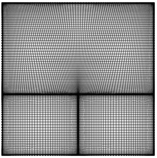 Figure 4 shows the grid of case 4. The grid is in a form of regular horizontal and vertical lines and is denser near the boundaries. The reason for this is the importance of the flow behavior and temperature gradients at the boundaries.