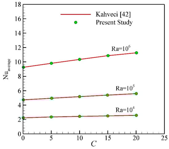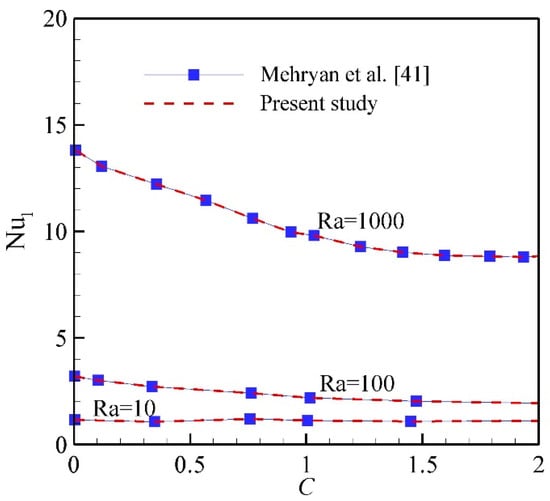 The comparison of the average Nusselt number reported in Mehryan et al. [41] and the results from the present study.