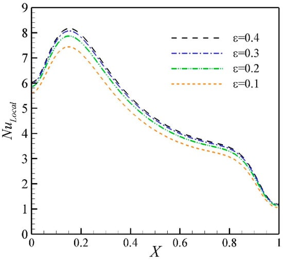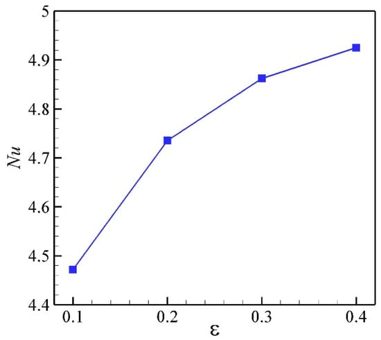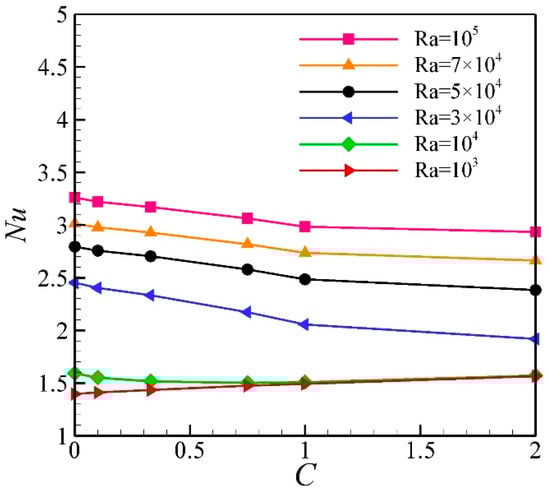 where h is the convection heat transfer coefficient, L is the cavity length, and k is the thermal conductivity. Now, using the non-dimensional parameters of Equation (20) and substituting them into Equation (38), and after the simplification, the non-dimensional equation of the Nusselt number is obtained as: