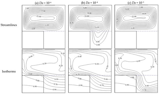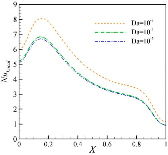- The effect of the Darcy number as a non-dimensional permeability on the heat transfer in the cavity has a direct effect so that with its increase, the heat transfer is increased and with its decrease, the heat transfer is decreased.
