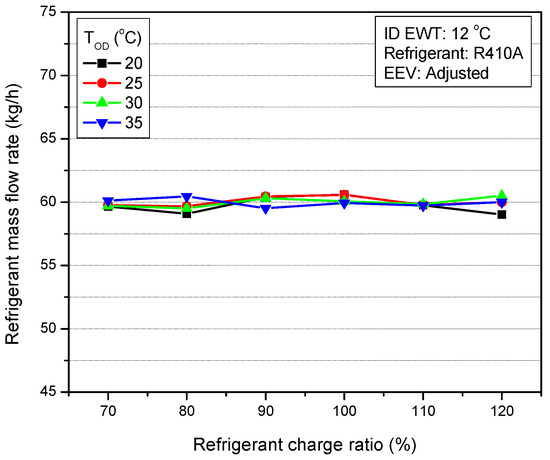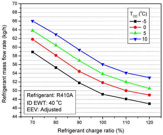 Variation of refrigerant mass flow rate with refrigerant charge ratio and