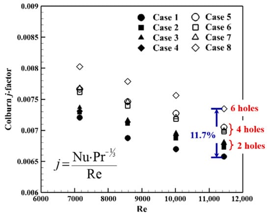 Colburn j-factor with the Reynolds number.