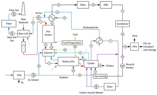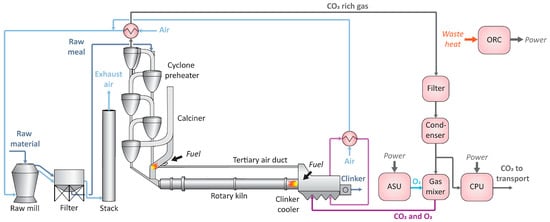 - Jamali, A.; Fleiger, K.; Ruppert, J.; Hoenig, V.; Anantharaman, R. Optimised Opearation of an Oxyfuel Cement Plant (D6.1). 2018. Available online: https://www.sintef.no/globalassets/project/cemcap/d-6.1-optimized-oxyfuel-operation.pdf.pdf (accessed on 8 January 2019).