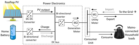 Schematic of DC-coupled domestic PV-battery system.