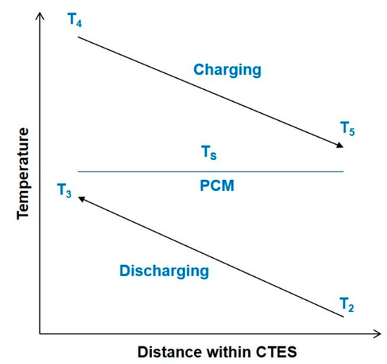 Temperature change of hydrogen through the CTES system with phase change materials.