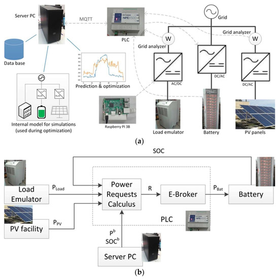 As shown in Figure 6, the server PC runs the aforementioned prediction and optimization at the beginning of each day. After each optimization, the PC server sends to the PLC the necessary parameters so that the latter can reconstruct Pb and SOCb through linear interpolation.