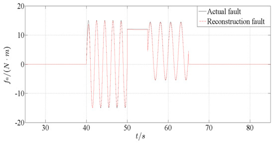 where, ε is a sufficiently small normal number. According to the designed nonlinear sliding mode observer, augmented state x(t) and its estimated value can be obtained. According to the definition of x(t), the estimated value of original system state xp and the estimated value of actuator fault fa can be obtained.