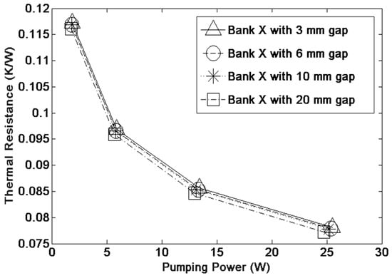 11]. Since the heat transfer performance at the entrance of the heat sink (heat exchanger) often far exceeds that of the rear part of the heat sink, as a consequence, one can introduce some bypass airflow that is not in close contact with the surface at the entrance. Some part of the air then flows toward the rear part of the heat sink. Apparently, it will offer a larger temperature difference at the trailing part of the heat sink and a higher heat transfer rate accordingly. Through this manipulation, the heat transfer in the front part may be impaired, but the rear part may be significantly improved. There might exist a niche region by which the performance of the heat sink can be improved.