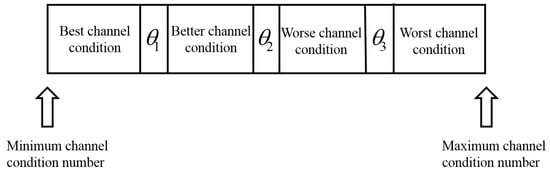 where is the condition number of subcarrier channel matrix, is maximum singular value, is minimum singular value, and m is the subcarrier index. The channel condition is determined by the condition number. When is close to one, it is the best channel condition but when is larger than one, it is the worst channel condition [18,19]. Through the above conditions, the complexity depends on thresholds,