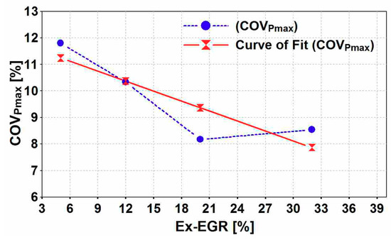 Cyclic variability of Pmax due to variation of Ex-EGR setting (rpm = 3000, IMEP = 2.1 bar, Tepc = 425–530 K).
