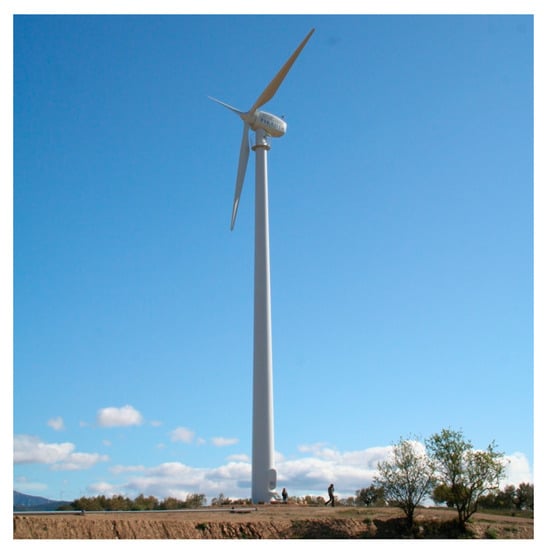 Once the procedure to determine the number of the resonance frequencies of the transmission chain of a horizontal wind turbine was analytically validated, we needed to experimentally validate both the mechatronic modeling introduced in Section 2 and the analytical procedure to determine the number of resonance frequencies introduced in Section 3. For that purpose, an experiment was designed using the real 100-kW wind turbine shown in Figure 5.
