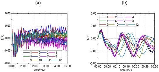 The average indoor temperature difference. (a) Temperature differences from 0 to 5 h; (b) temperature differences from 0 to 30 min.