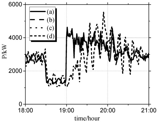 It can be seen in Figure 11a that the total load quickly decreased to 50% and the load was maintained for half an hour; the average temperature of the aggregate unit fell by more than 0.5 degree centigrade. Compared with Figure 11a, a load rebound is observed at 20:00 in Figure 11b because the proposed virtual house model has an error for heterogeneous houses. As can be seen from Figure 11c, different setpoint temperatures do not affect the load control but suppress the load rebound. In Figure 11d, the air conditioning units are divided into 10 groups for queuing and the performance of the load control accuracy or load oscillation suppression is lower than for the proposed DR scheme.