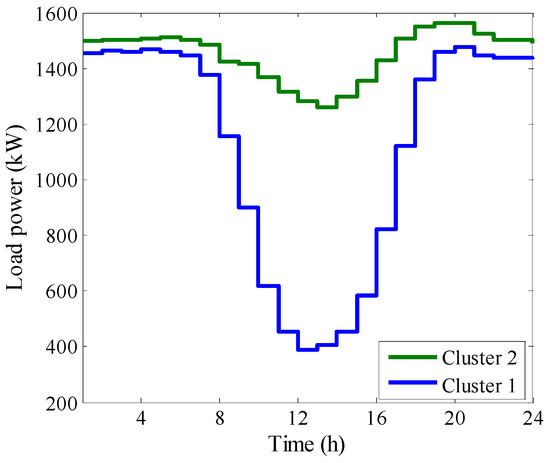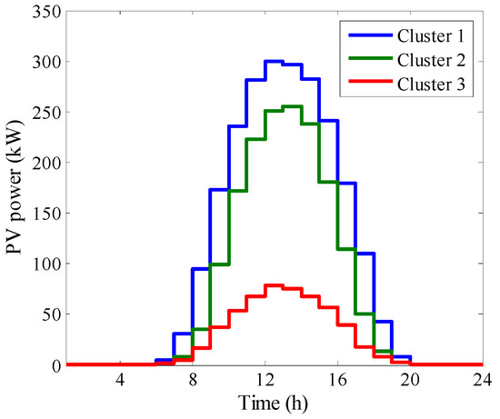 According to the above index, the number of clusters of the daily load and PV curves in a year can be determined. The load and PV are respectively divided into and clusters, and the corresponding probabilities are and . In this paper, we assume that the load and PV are independent, so there are scenarios with the probabilities .