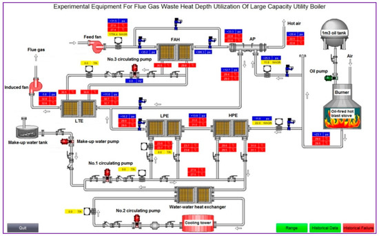 For the experiment unit, the input energy includes heat of flue gas from hot blast stove, and power input by water pumps, oil pump and fans, the recovered heat includes heat obtained by the air in FAH and AP, and the heat obtained by the water in LPE and HPE. According to Figure 1, the recovered waste heat includes the heat obtained by the air in FAH, and the heat obtained by the water in LPE and HPE.