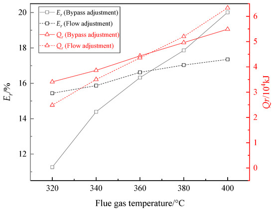 Er and Qr as flue gas temperature changed.