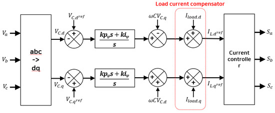 Figure 9 shows a block diagram of the proposed seamless transfer controller. A separate load current feed-forward compensator was added to the existing voltage controller output. Therefore, the voltage controller controls the capacitor current of the inverter, and the current flowing to the load is managed by the feed-forward compensator.