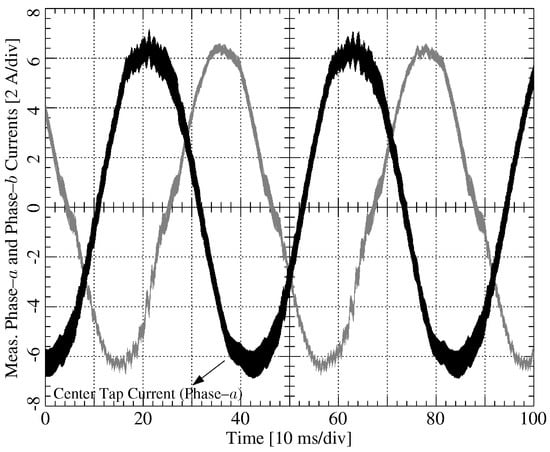 However, the FSTP inverter topology has some drawbacks: since one of the motor phase windings has to be connected to the center-tap of the DC-link capacitors, as shown in Figure 2, current flowing from this leg charges one of the capacitors and discharges the other one, therefore it exposes low frequency harmonic contents. This will cause significantly large fluctuations in the DC-link voltage and create considerably large unbalance three-phase currents at the output [55,56,57]. These unbalanced currents with harmonic components get bigger when the DC-link voltage is lower. Improved controller design is required to balance the capacitor voltages. Moreover, to eliminate the third-order harmonics, a larger value of switching frequency should be selected [58,59,60,61,62,63]. FSTP inverter control topologies have been adapted to sensorless PMSM drives in [26,27,28]. In [66], although the sensorless FSTP inverter of PMSM drive is proposed, ANN is used to achieve a sensorless drive which has a complicated algorithm.