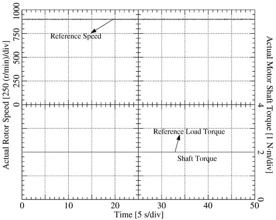 Experimental steady-state nominal speed (900 r/min) response under full load (2 N·m) with (high) while is increased by 82.35% and is decreased by 40%.