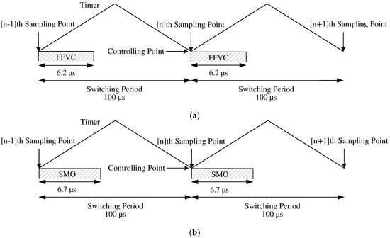Timing diagrams for (a) Feedforward Voltage Control (FFVC) and (b) Sliding Mode Control (SMO).