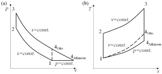- Hou, S.S. Comparison of performances of air standard Atkinson and Otto cycles with heat transfer considerations. Energy Convers. Manag. 2007, 48, 1683–1690. [Google Scholar] [CrossRef]