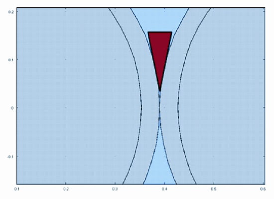 - Zone 2 (Figure 10c) covers the area between the curvatures of both wires, with the widening area of the air insulation. Due to the geometry of this part of the insulating system, there is also a tangential component present in addition to the normal component of the field on the surface of the wires insulation.