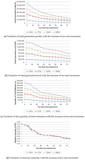 The above comparison indicates the superiority of the proposed carbon-tax policy over the carbon-tax policy with a constant tax rate in comprehensive consideration of generation profits, generation level, emission quantity, and emission intensity.