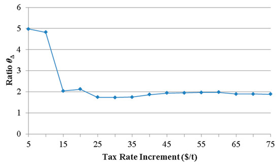 Variation of θΔ with the increase of tax-rate increment.