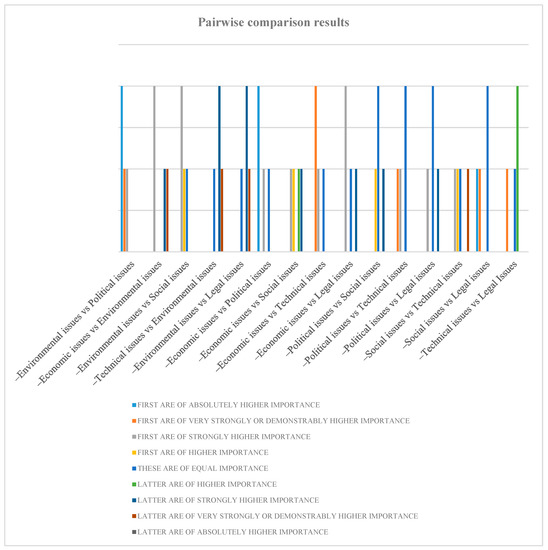Although the PESTEL issues pairwise comparison facilitated the judgements’ selection by the experts, and the calculations and opinions collected were extended to the relevant indicators, it should be noted that the results could be more representative, if the comparisons were performed for each indicator to all others. This would be more demanding to process, but the detailing could guide to more accurate and extensive conclusions.