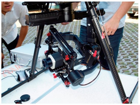 The monitoring of the temperature of PV panels by a drone was conducted in cooperation with Upvision, s.r.o. during a sunny day on 20 June 2017. On this day, the PV power plant had been operating for less than two years. The operational time of the drone is 20 minutes (period between 2 recharging cycles). The drone carried the infra-camera Flir A65. Figure 1 shows the PV power plant and the drone during temperature monitoring. Figure 2 shows the infrared camera in detail. The camera resolution is 640 × 512 pixels and has a thermal sensitivity of 0.05 °C, temperature range of 40–160 °C, and spectral range of 7.5–13 μm. Data processing was conducted using the Flir software (Flier Systems Inc., Nashua, NH 03063, USA).