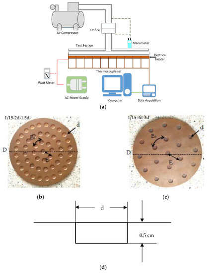 - Alenezi, A.; Almutairi, A.; Alhajeri, H.; Addali, A.; Gamil, A. Flow Structure and Heat Transfer of Jet Impingement on a Rib-Roughened Flat Plate. Energies 2018, 11, 1550. [Google Scholar] [CrossRef]