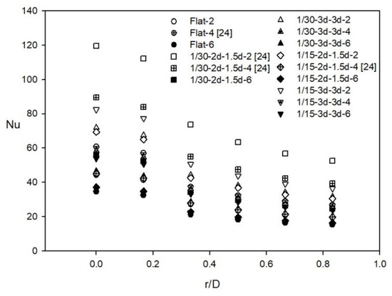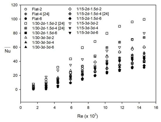 - Kanokjaruvijit, K.; Martinez-Botas, R.F. Heat transfer correlations of perpendicularly impinging jets on a hemispherical-dimpled surface. Int. J. Heat Mass Transf. 2010, 53, 3045–3056. [Google Scholar] [CrossRef]