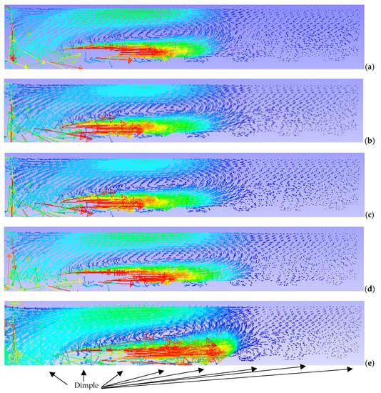 5.3. Effect of the Distance between Dimples (Er, Eθ)
