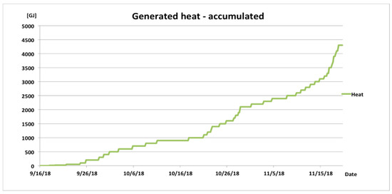 Also, the more rapid increases in the amount of heat exchanged correspond the drops in the external temperatures. The total amount of heat exchanged in the analyzed period was around 40 GJ, which is far below the capabilities of the current heat exchanger.